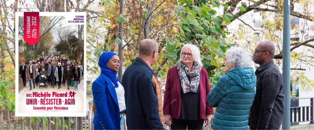 Agir pour garantir à chacun les droits à la sécurité, l’accès à la santé, à des logements dignes, à l’éducation, à la culture, au sport. Agir pour notre jeunesse, pour l’emploi, pour une ville durable et solidaire. Agir pour une commune forte, au plus près des attentes et besoins des Vénissians.